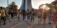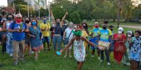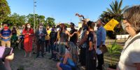 Iniciada em novembro de 2021 a obra pintada na parede lateral do edifício do Departamento Autônomo de Estradas de Rodagem (Daer) está concluída. O enorme mural foi inaugurado na nesta segunda-feira (10), às 18h, com a presença dos artistas e das entidades e parcerias que apoiaram esse projeto de arte urbana. O cortejo festivo de inauguração do mural partiu da Ponte de Pedra e encerrou no Prédio do DAER, aos pés da pintura.